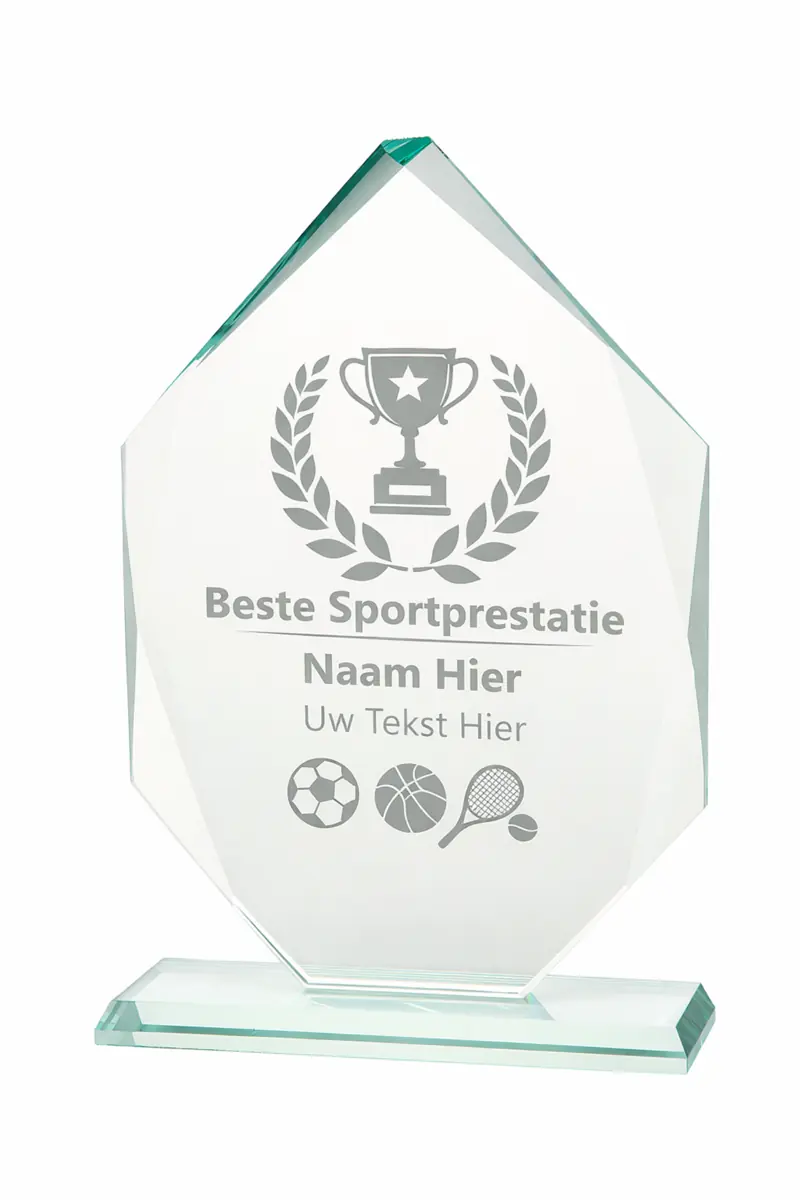 Deze glazen trofee combineert klasse met veelzijdigheid en is een uitstekende keuze voor elke gelegenheid waarbij waardering centraal staat.