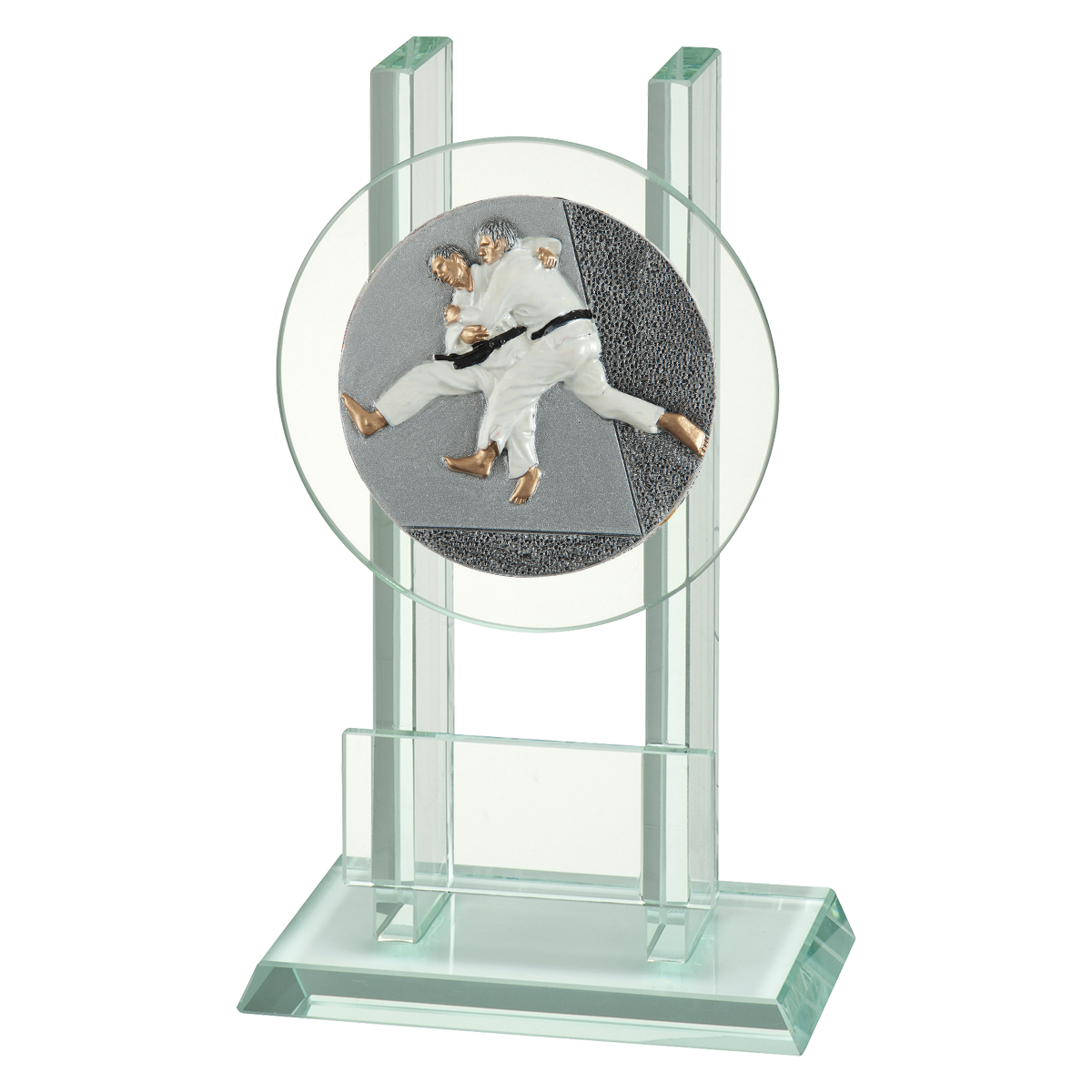 Deze prachtige glazen trofee met een gouden en zilveren afwerking is de perfecte beloning voor elke judoka. De ronde schijf toont een gedetailleerde afbeelding van judoka's, waardoor het een opvallend stuk is voor elke prijsuitreiking. Bovendien kunt u deze trofee personaliseren met een graveerplaatje, zodat u uw eigen persoonlijke tekst kunt toevoegen. Dit maakt het een uniek aandenken voor de winnaars in de Judo sport.
