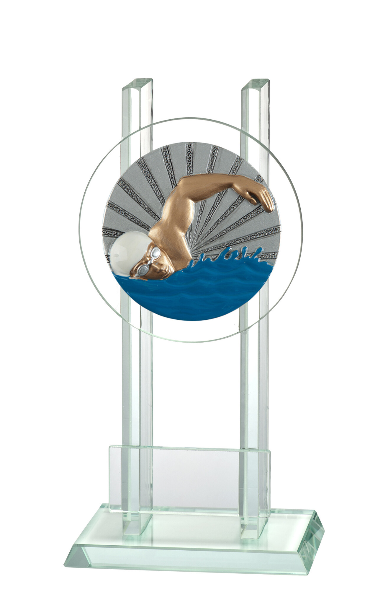 Deze elegante glazen trofee is een perfect eerbetoon aan de zwemsport, met een prachtige ronde resin schijf bovenop die een gedetailleerde afbeelding van een zwemmer toont. De trofee biedt de mogelijkheid om een graveerplaatje op de onderzijde te plaatsen, waardoor het een persoonlijk en uniek aandenken wordt voor elke zwemmer of zwemwedstrijd.