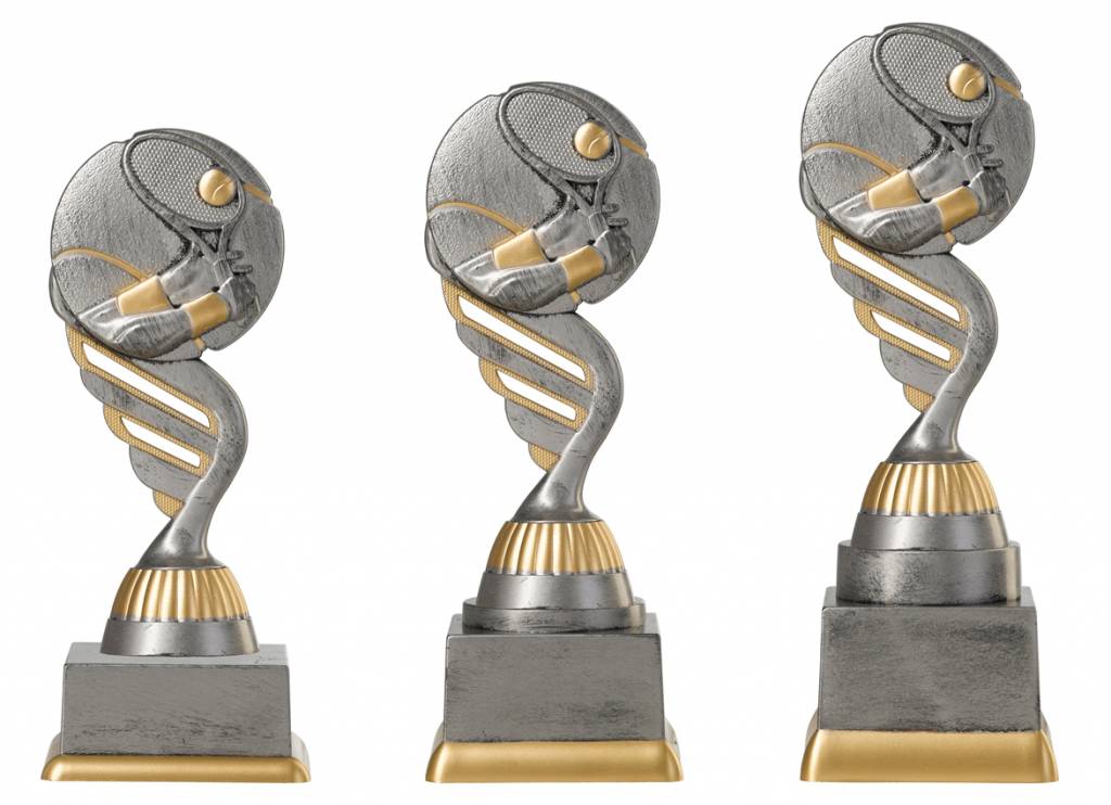 Deze trofee in de kleuren antiek zilver en goud met een tennis figuur, vormt een uitstekende beloning voor iedere tennisliefhebber. De trofee is gemaakt van kunststof en is verkrijgbaar in drie verschillende maten. Daarnaast heeft u de mogelijkheid om de trofee te personaliseren met een graveerplaatje, waarmee u een unieke boodschap of naam kunt toevoegen. Dit maakt het een perfect geschenk voor toernooien, competities of als blijk van waardering voor een bijzondere prestatie.
