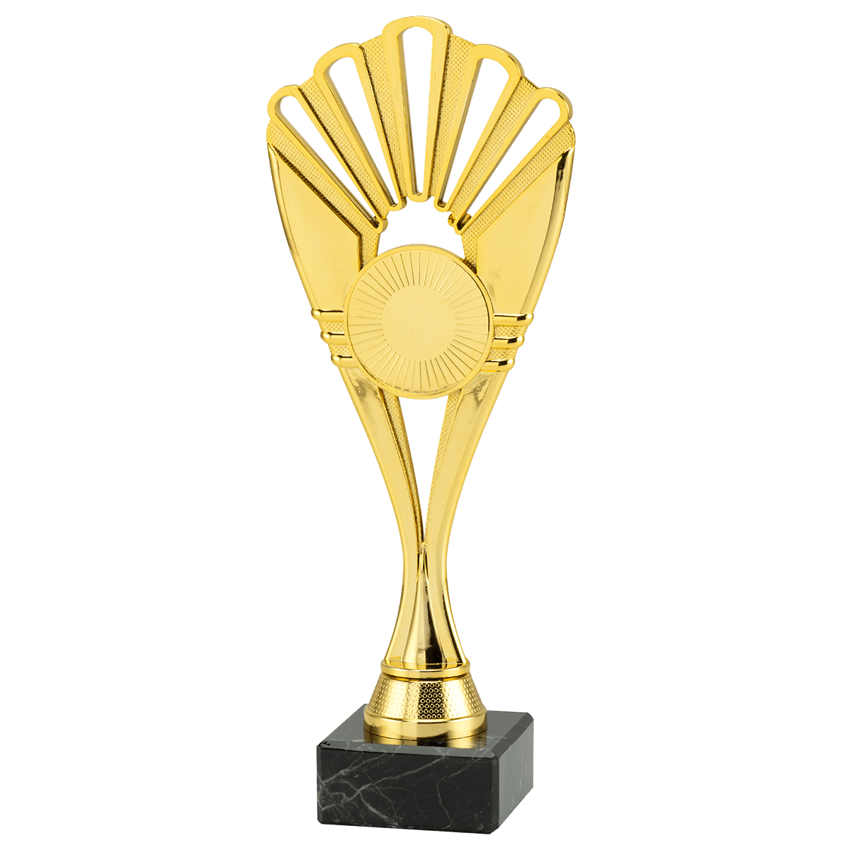 Deze trofee met een zwarte basis is de perfecte beloning voor elke prestatie. Gemaakt van kunststof, biedt deze budgetvriendelijke trofee een schitterende uitstraling en is geplaatst op een marmer blok, wat zorgt voor een luxe uitstraling. Ideaal voor sportevenementen, bedrijfsprijzen of andere onderscheidingen. De trofee kan gepersonaliseerd worden met een graveer tekst, waardoor het een uniek aandenken wordt. Daarnaast biedt het ruime keuze uit gratis (sport)afbeeldingen of de mogelijkheid om uw eigen ontwerp te uploaden, zodat het volledig aan uw wensen voldoet.