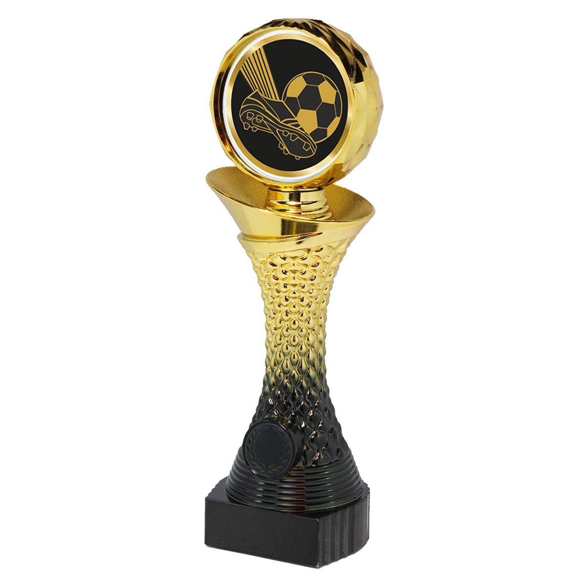 Voetbal Trofee – Goud/Zwarte Beker in 3 Hoogtes – Met Gravure Mogelijk